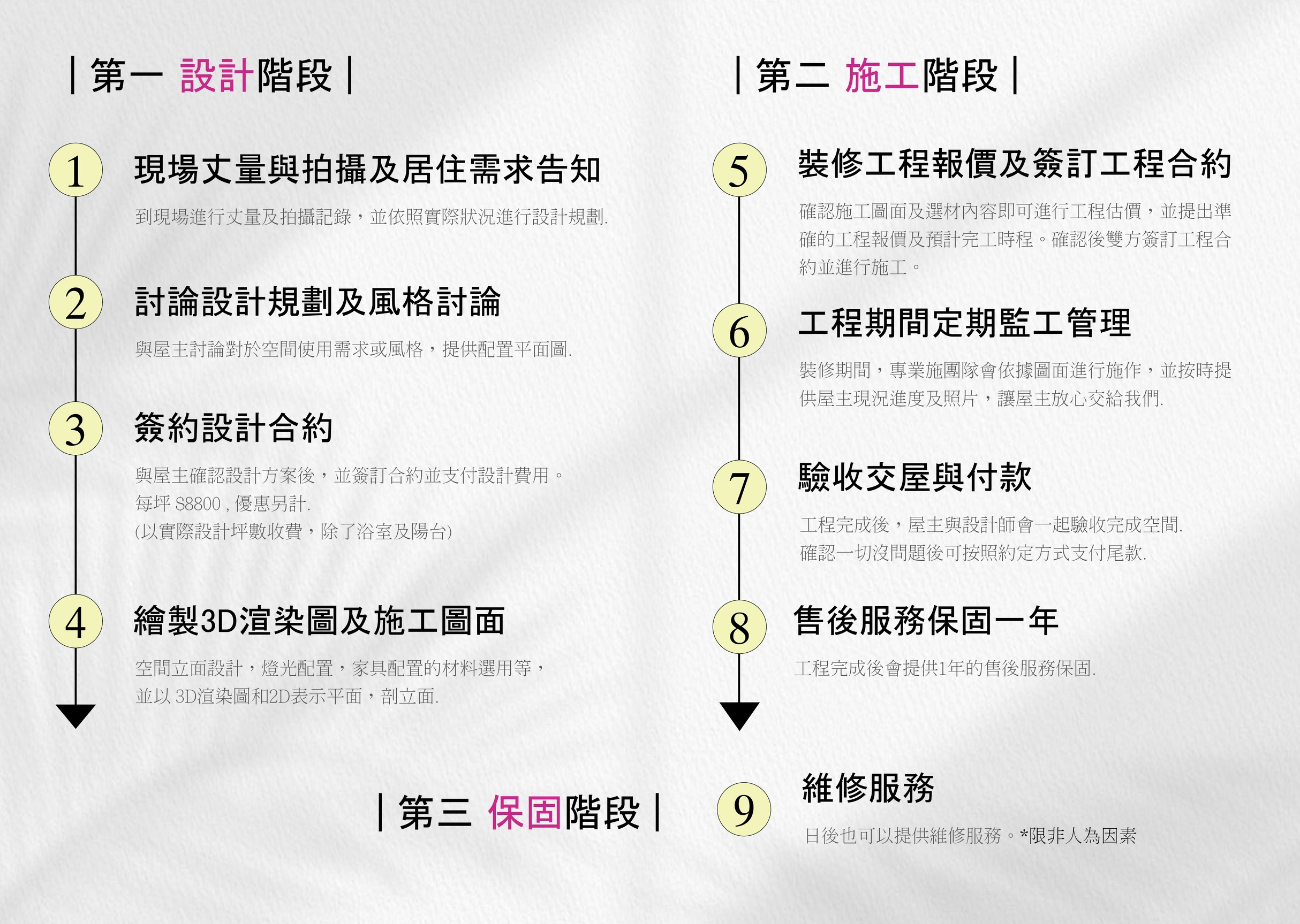 客變流程會提供設計平面配置圖,需預繳10%的設計費。